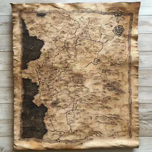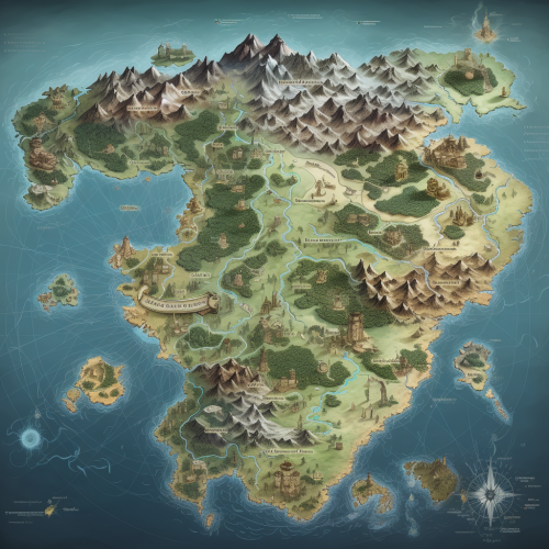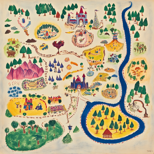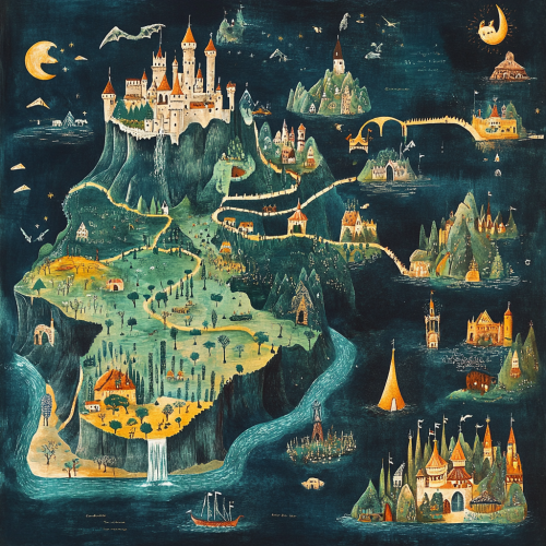 Imaginary Kingdom Map: Castle, Cliffs, Mythical Animals, Villages