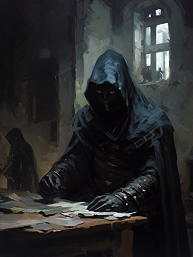 black hood mens playing console game with anger, inside of dark medieval building, Bold brush stroke acrylic painting style , acrylic touch --ar 3:4