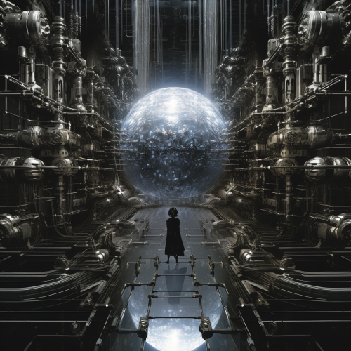 An Impenetrable Void in the style of Valerie Hegarty, Tetsuya Ishida, ultrarealistic, 8k, Futuristic Escape Velocity organisms evolving in the void of the inhumanish transcendental capitalist machine melting overdrive and dissipating at the speed of light inside an mise-en-abyme, optical illusion mirror, impossible looking atomic clock at the Event Horizon of a Black Hole melting in the style of H.R. Giger, Ghost in The Shell, unreal engine asset, 4d object, maximum detail, strong contrast and high exposure.