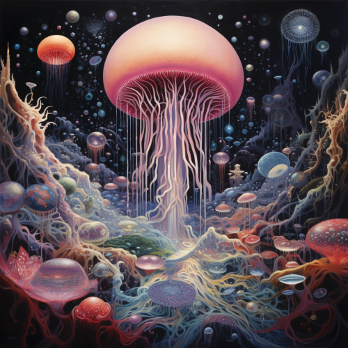 An intricate bio-organism a fusion of various elements, combining the characteristics of insects + microorganisms + mollusks, product photography + top view shot + dynamic composition, incredibly detailed, sharpen, details + intricate detail + professional lighting, film lighting + 35mm + anamorphic + lightroom + cinematography + bokeh + lens flare + film grain + HDR10 + 8K + Roger Deakins + Blade Runner 2049, ((cinematic)) --v 5.2 --style raw --s 200 --c 25 --weird 250