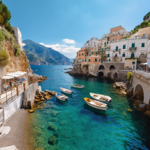 Impressionistic artwork of Amalfi Coast village and sea