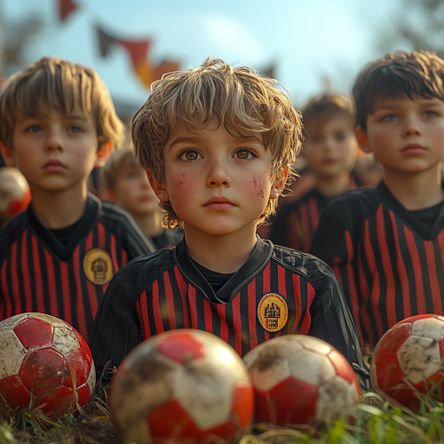 an impressionistic watercolor painting on a white background. A knight holding a sword and dressed in roman armor standing resolute before a trainin ground. --ar 3:2