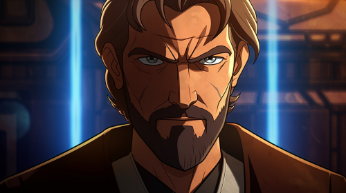 28 year old adult jedi-knight in training to become jedi-master, classic star wars animation style --ar 16:9