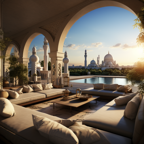 luxury dubai villa backdrop with amazing views with space for model to stand --s 750 --v 5.2