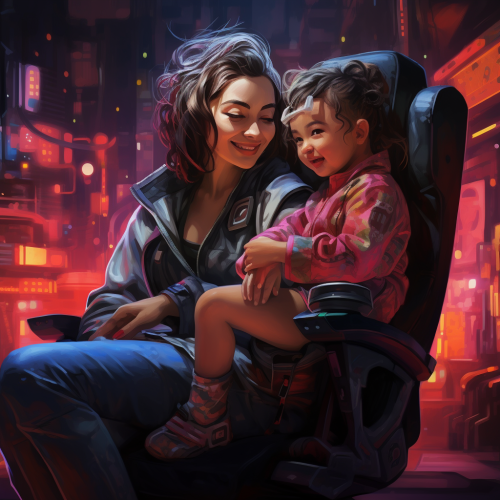 A young Japanese mother and her elementary school-aged daughter sit together in a modern Western-inspired room, featuring sleek furniture and neutral colors. The mother, in casual, elegant attire, smiles down at her daughter, who is wearing comfortable clothing. The room’s minimalist decor, clean lines, and contemporary style create a light and airy atmosphere, highlighting the family’s closeness. Photorealistic, realistic image, 8K resolution