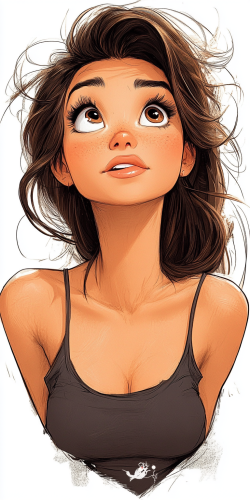 a simple cartoon of a beautiful woman with brown hair, white background, princesscore, I can't believe how beautiful this is --ar 1:2 --personalize 2gwf1qc --stylize 750 --v 6.1