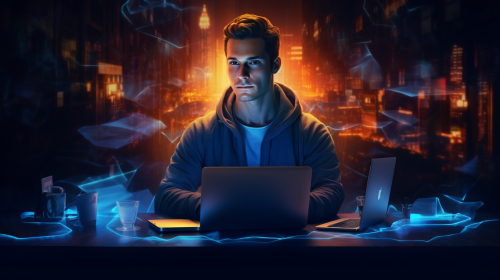 attractive and charismatic software developer with a halo --ar 16:9