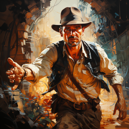 Indiana Jones as GTA 5 loading screen, typical artwork, Gangster --ar 16:9
