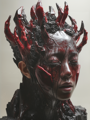 Inflatable insects inside the head of Mater Dolorosa. Inflated univers Gucci. Highly detailed Absolon Stumme style. Photography by eiko ishioka + surreal, doll style images::1 Film still, weird ritualistic Characters , ritual in the weird dimension, inflatable textile technical fabric. --ar 3:4 --v 6.0 --s 750
