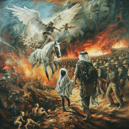 A hoplite carrying a wounded comrade off the battlefield, determination in his eyes, with burning ruins and fleeing enemies in the distance. Hyper Realistic HD photos --v 6.1 --ar 16:9