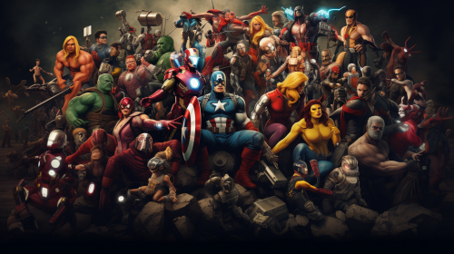 a group of heroes with "Marketing Automation" text written om their suits, inspired by comics, --v 6.0