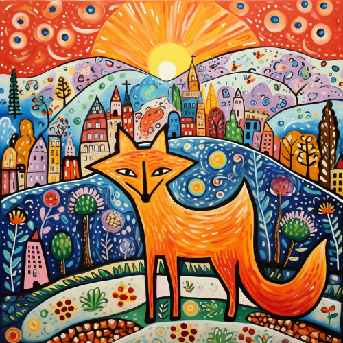 illustration of AI fox head hybrid by Tomi Ungerer --ar 30:21 --style raw --v 5.2