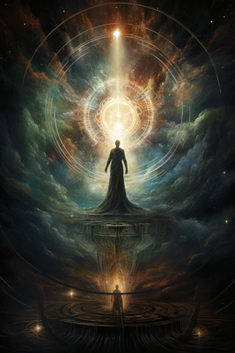 A butterfly making its way towards the light. Purple, celestial background. Add quote: “Serious inner spiritual work may sound tedious and demanding, but is exciting to the spirit, which is eager to return home.”