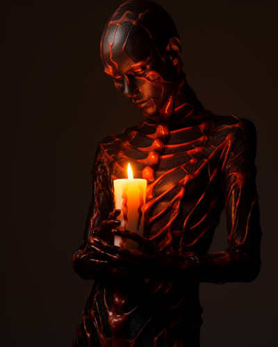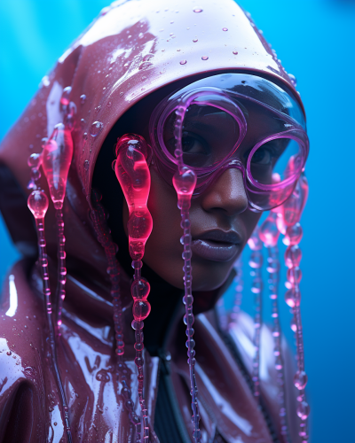 Brian Ziff fashion photoshoot of melting alien, captured with Sony Alpha a7R IV with Sony FE 90mm f/2.8 Macro G OSS Lens, photography, fashion, model, luminous, insane detail, directional lighting, science fiction --ar 4:5