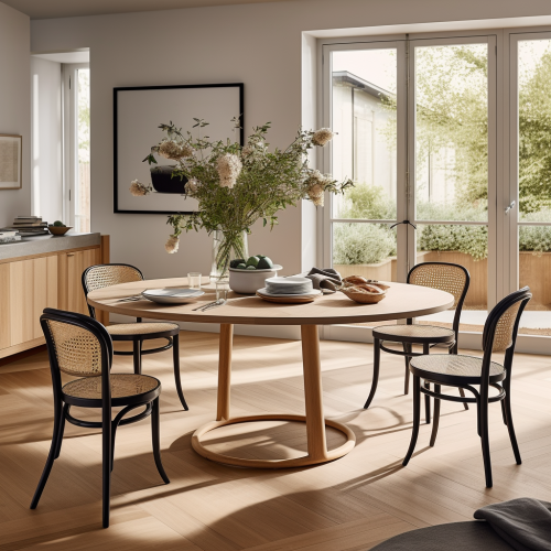 35 mm lens ari alexa 4k hyper realistic cinematic image of a dining room in a beautiful clasic a modern and elegant house --ar 16:9