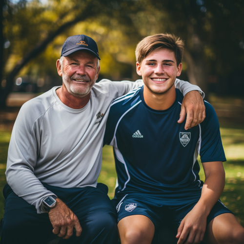 The image shows two people, 1 with a confident face slightly above is a mentor he supports and cares for the second person who has an uncertain expression with fear infusion of the image is care, love and support, good quality image realistic on a black background