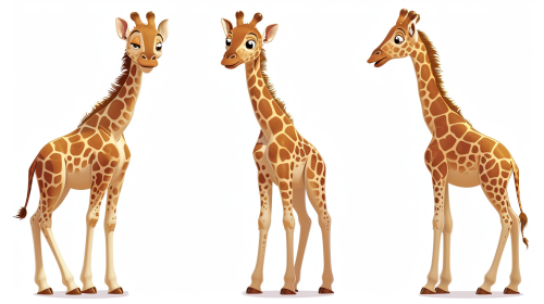 cartoon realistic style, full body view, three views, front view, left view, rear view, a cartoon adult GRAFFE looking at the audience, naturally stand, cartoon style, hyper-realistic animal illustration, children's storybook illustration, pure white background, best quality, ray tracing, xbox 360 graphics, emphasis on character design --ar 16:9 --v 6.0