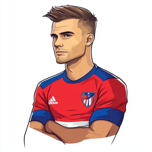 cartoon football player in FC VIKTORIA PILSEN jersey, without logo, texts and brand logo, white background, white skin, red color jersey with blue stripes