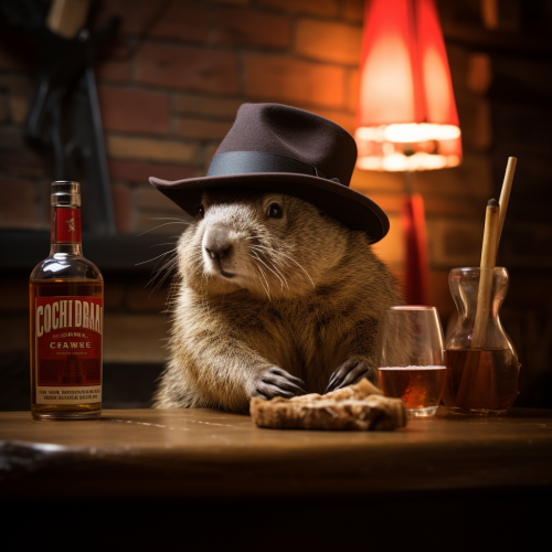 a capibara from the Italian mafia drinking whisky in Canada