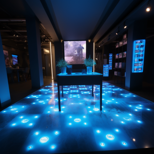 augmented reality marketing event, with blue led lights, ultra HD, hyperrealistic, --ar 1:1 --v 5.0