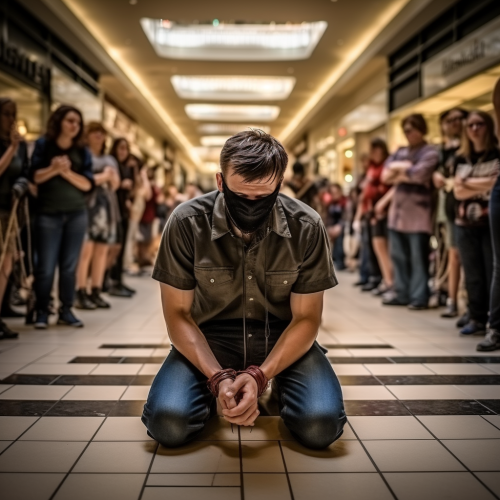 a Christmas tree grew through the fractured marble floor of the shopping centre, hyper realistic photo