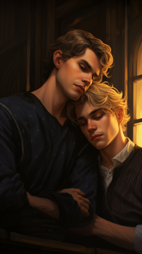 a couple of gay men, fantasy illustration, detailed art, charlie bowater's style. 4K, --ar 9:16 --v 5.2