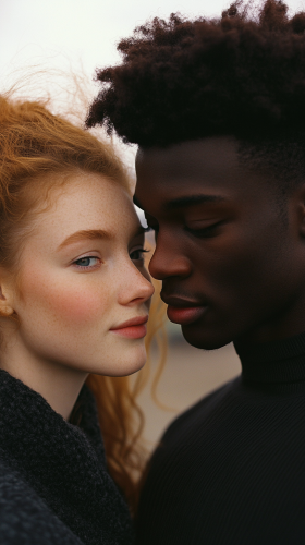 Amid a jubilant scene outside the U.S. Supreme Court, a historic ruling that overturned laws against interracial marriage is being celebrated. In the midst of the joyous crowd, an African American young woman and a white American man he must be white under any circumstances are locked in a warm embrace, surrounded by enthusiastic supporters. Their embrace symbolizes the triumph of love over discrimination and the hard-fought victory for equality.