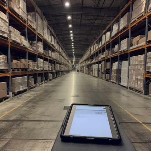 Ikea warehouse logistic iPad with empty screen in front --s 750 --v 5.0