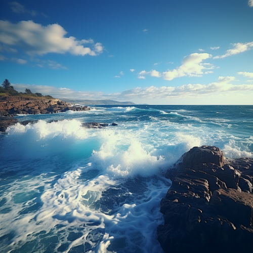 a highly detailed photography of a blue ocean seen falling off into the distance. 4k sony hdr