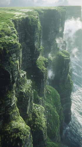 leprechaune walking along an Irish cliff and seeing the sea.leprechaune is very short and has red hair and beard. hyperrealistic fantasy imagen cinematic, lighting, dramatic light, strong focus on cinematic outputs. excels at wider aspect ratios, and does not need a negative.has a top hat --ar 9:16