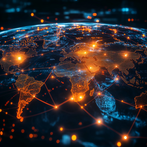 a beautifully design world map glowing with networking lines and symbols to different locations on planet earth, high detail, dynamic design, tech attributes, beautiful lighting ar 16:9