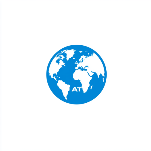 create a logo for the photographer , on the logo should be with Blue Earth icon with white background vector illustration on a solid white background, featuring a globe or world map in a minimalistic design style. The illustration uses simple shapes and a blue color palette, with a clean, simple white background and no shadows, on the Earth should be initials "AT", Circle the French Riviera cote d’azur region in red on the Earth