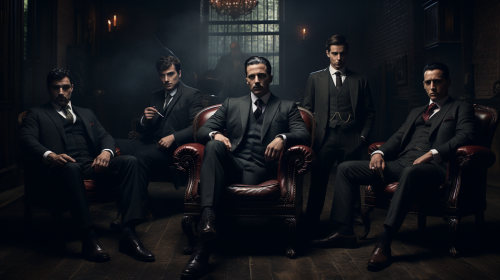 Italian mafia of the 19th century, beautiful Italian models, it is very hot, high temperature, hot summer , in the dark background of New York --ar 4:3 --style raw