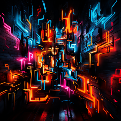 grafitti neon glowing red yellow orange darkness black