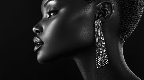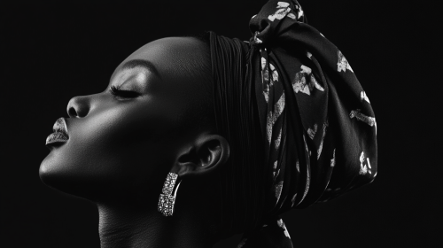 Perfect portrait editorial photoshoot in black and white of a Kenyan women, editorial, vogue portrait, studio professional, black background, perfect skin texture, hyper detailed, photo realistic --ar 16:9 --v 6.1