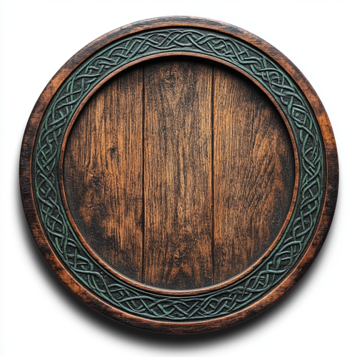 A circular icon for an RPG game. The ring is flat and minimalist in design. It has a wooden surface with celtic dark green etchings. As a circle token, slim outer edge, empty inside the circle, white background. --s 250