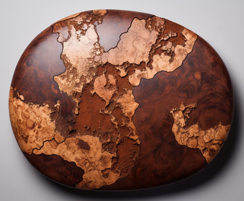 minimalistic brown bespoke burl wood in the with rose gold etchings ultra-realistic --ar 6:5