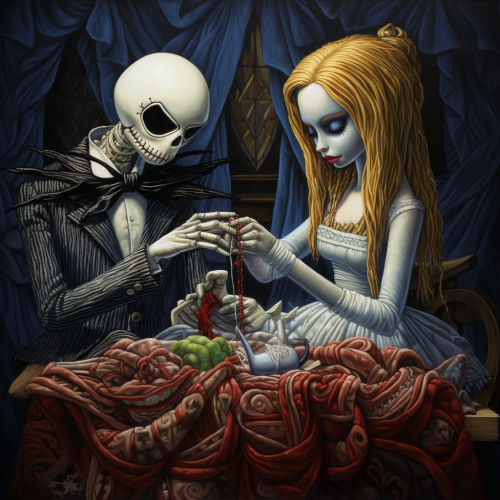 oil painting of jack and jill skellingtonoil painting of jack and jill skellington --ar 2:3 --s 250
