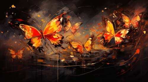 Butterflies gold and red _with_wings_that_play_harmonious_notes colorful beckground scribbled --ar 16:9 --s 250