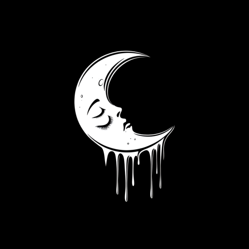 monocrome simple logo for a plump crecent moon with juice dripping off of it for a company called juicy moon, vector image, adobe illustrator, sticker pack