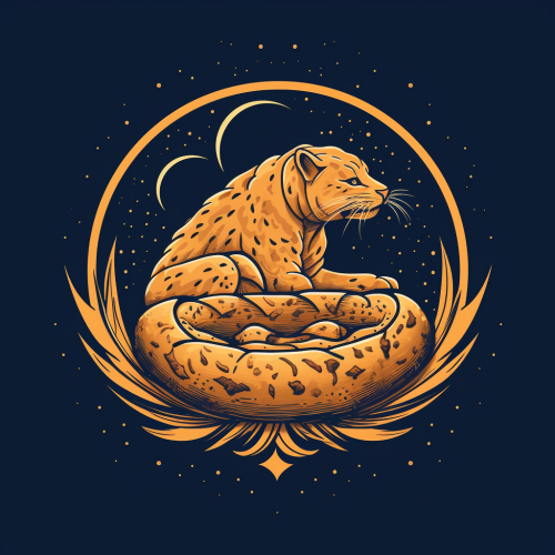 Design a visual logo for "a jaguar" featuring the crescent moon and a loaf of bread, symbolizing the idea of serving freshly baked, comforting treats every evening.