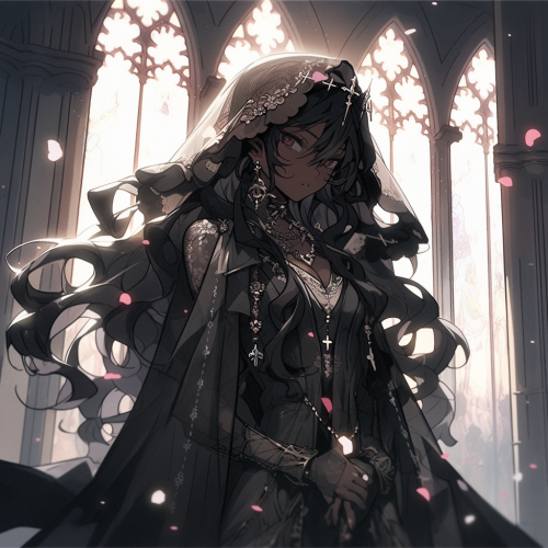 Japanese animation style, beautiful girl with deep eyes, soft makeup, ethereal aura, delicate features, dreamy gaze.