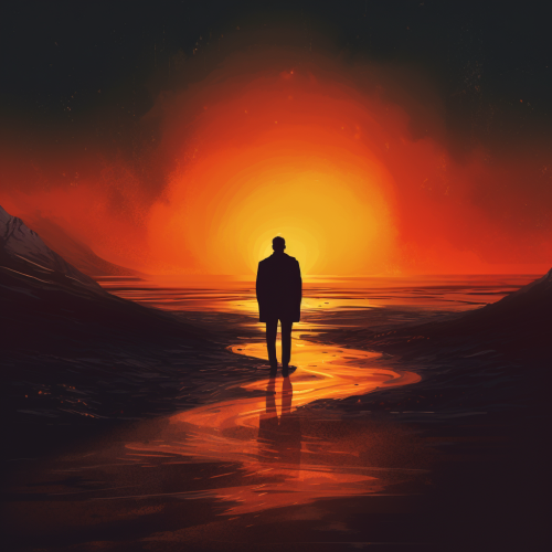 create the shadow of a man looking at an orange gold sunset