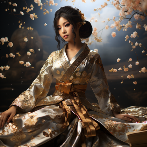 unique sparkly digital paper,Japanese Beauty,full body,whole body,Wearing a Japanese patterned dress with gold accents Costume,Japanese geta,photo is hyperrealistic,Dynamic Pose,picture books,The world's most complex,epic,masterpiece,8k --s 750 --style raw