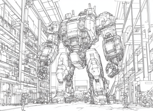 a japanese robot mecha in 1980s style, coloring page for coloring book, white background