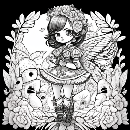 a highly detailed image depicting japanese manga mexican lstins magical girl in the style of Ai Yazawa including magical mexican flora and fauna, designed as a detailed coloring page. The scene is black and white and thick bold lines, perfect for coloring --v 4 --s 250