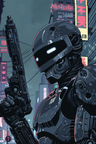 illustrated robocop drawn in a modern city the style by Torii Kiyonaga, --ar 2:3