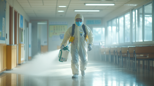 "Generate a realistic image of a Japanese elementary school gymnasium. Half of the gymnasium should be divided into a grid-like pattern with cloth partitions, resembling a temporary shelter or evacuation area. The other half of the gymnasium should show children playing, engaging in various activities such as running, playing ball games, or other recreational activities. Ensure the details of the gymnasium, such as the basketball hoops, lines on the floor, and windows, are visible. The overall atmosphere should capture the contrast between the organized shelter area and the lively, playful area."