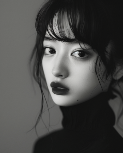 artistic japanese young 18 yo portrait, Mud skin feel, fashionable, chiaroscuro, double eyelid, --ar 4:5 --v 6.0 --style raw --no freckles