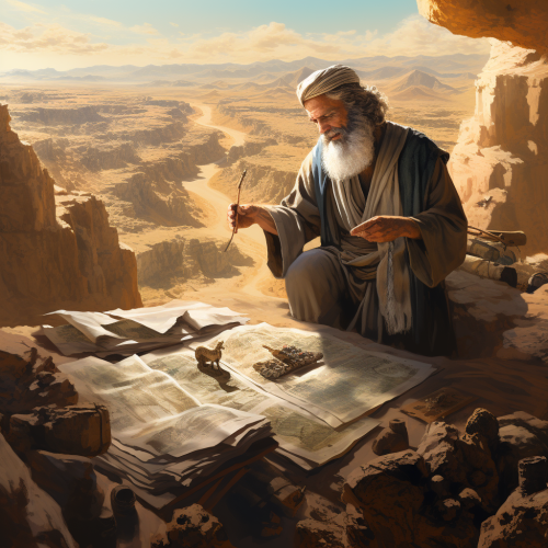 an egyptian farmer digging for fertilizer under a rock discovering the dead sea scrolls, golden light emerging out of the hole the farmer dug
